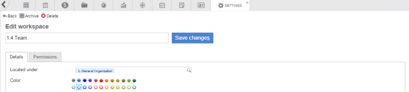 - Workspace color: This is used for the icon in the left sidebar and for the workspace indicator in the list view as shown above.